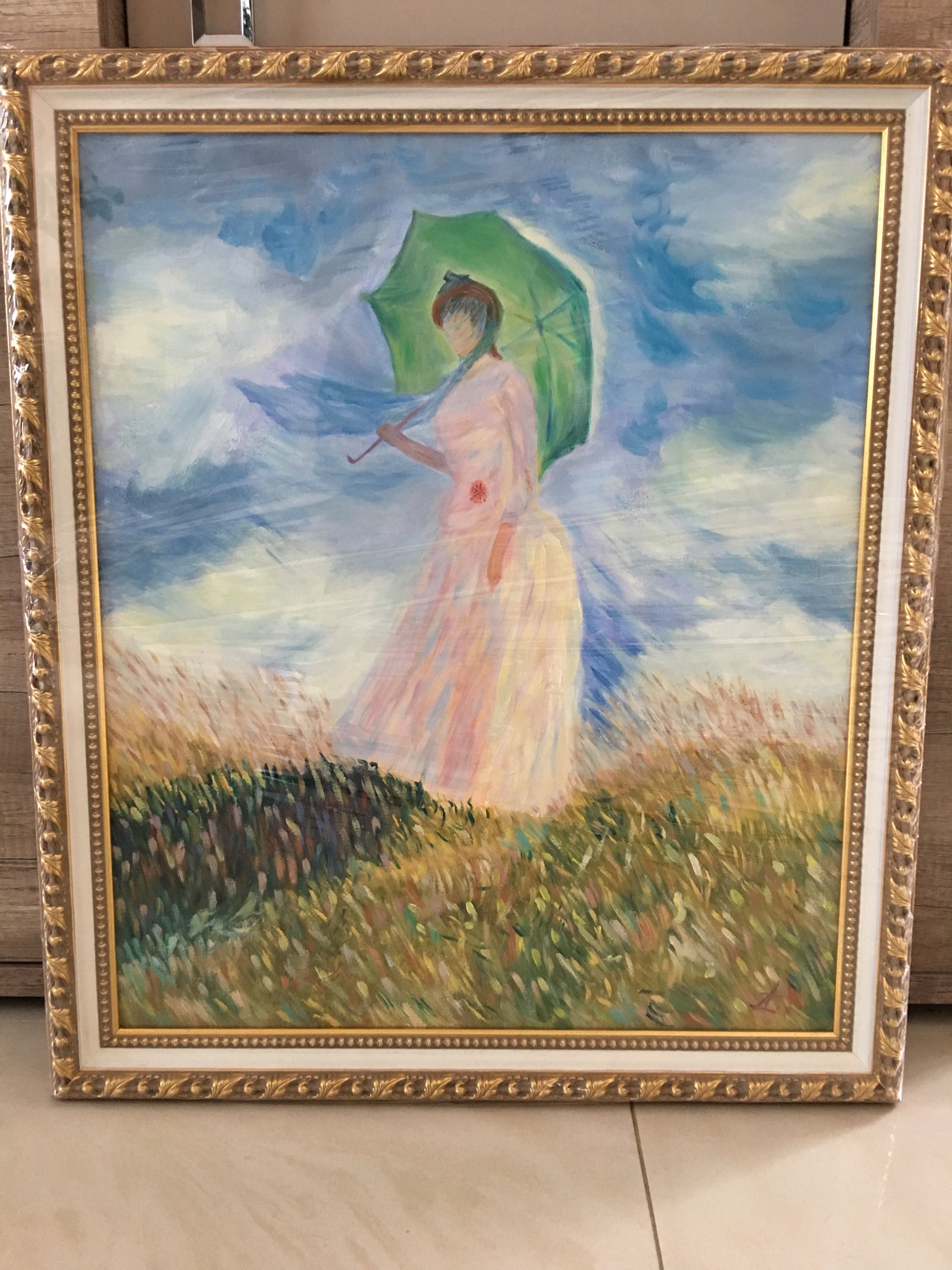 “Woman with a Parasol”. Claude Monet (1875) reproduction.